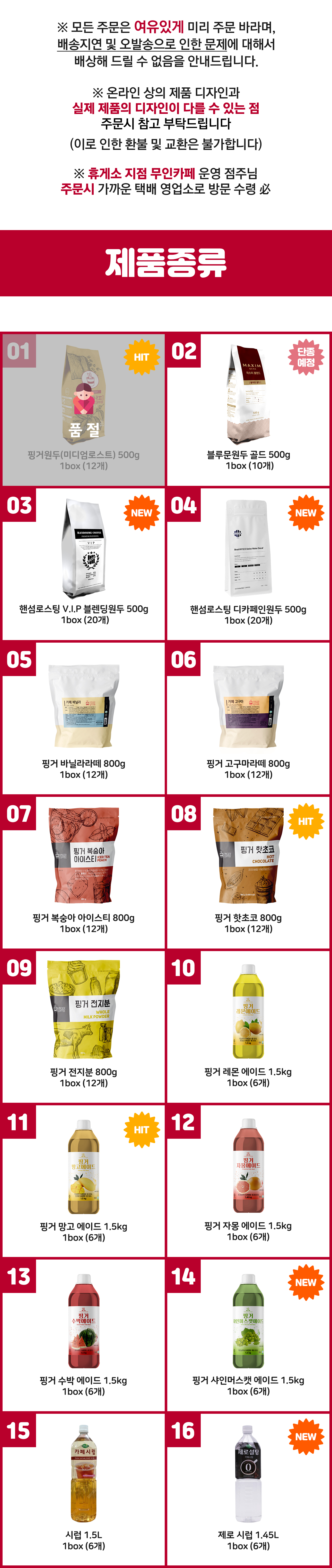 1. 핑거원두(미디엄로스트) 500g / 1box (12개) - 품절