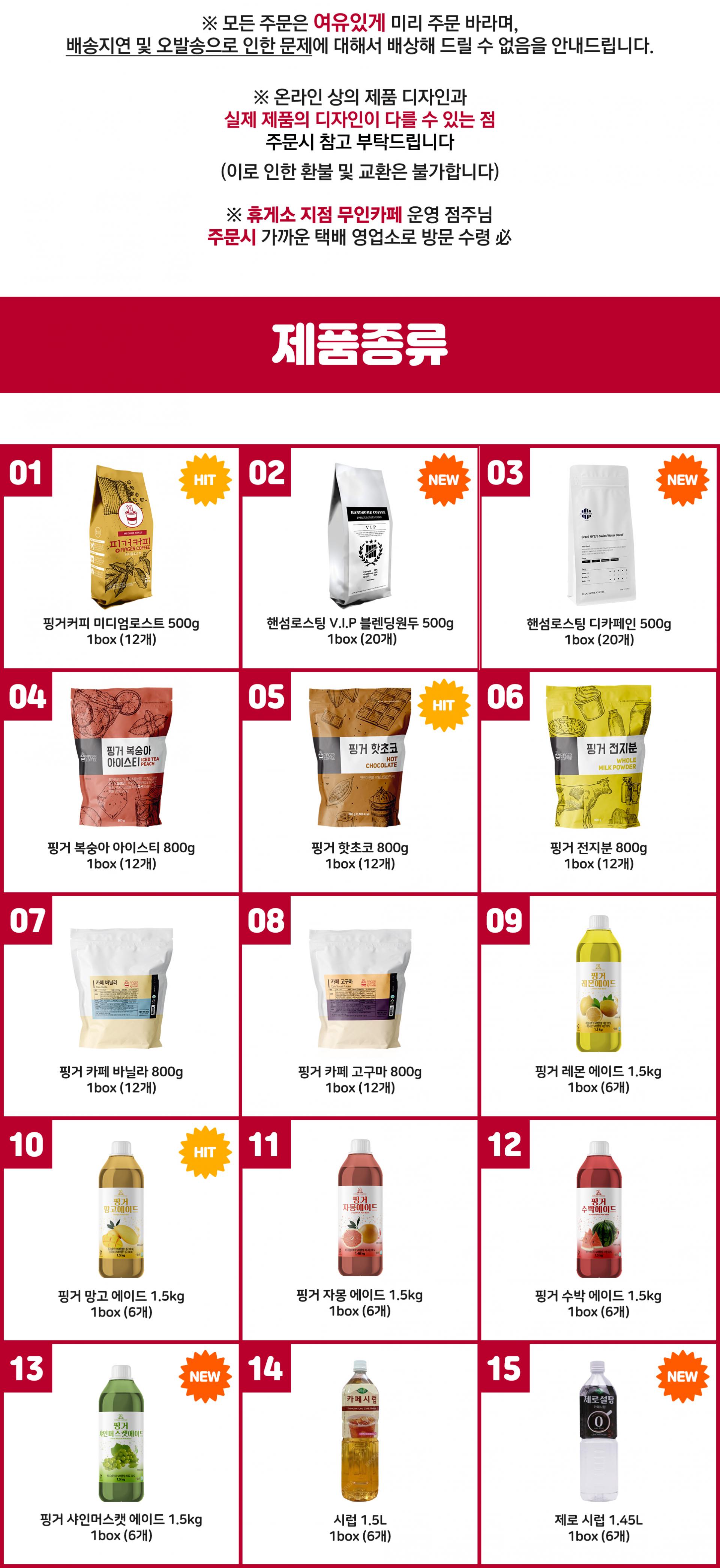 1. 핑거원두(미디엄로스트) 500g / 1box (12개)